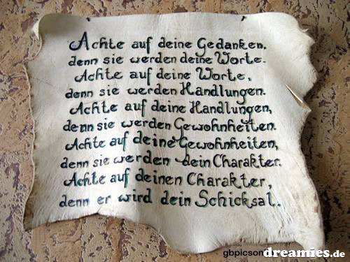 Empört riss Gegenwart den Vertrag an sich und sagte - beinahe schrill klangen die Worte: "Hier steht noch etwas. Das wolltest du uns wohl vorenthalten, Zukunft! Hier steht schwarz auf weiß: Selbst bei Uneinigkeit ist die Arbeit aufzunehmen. Dann werden die Menschen über unsere jeweilige Wichtigkeit entscheiden. Ach, Zukunft! Lass uns einander einfach akzeptieren. Drei Meinungen sind schwer auf einen Nenner zu bringen. Weshalb nur bist du so sehr von dir überzeugt? Nur weil du dich anmalst wie ein Farbtopf und ein herrliches buntes Kleid, gewoben aus Illusionen, trägst?Ich denke, Menschen wollen nicht im Morgen oder Übermorgen leben. Dieses Streben erfordert zu viel Energie! Und wie soll man sein Glück in der Zukunft fühlen können? Die Gegenwart ist Leben! Nichts sonst, denn sie ist die einzige Wirklichkeit. Alles, was dort geschieht ist fühlbar! Mit mir leben die Menschen im Hier und Jetzt!"